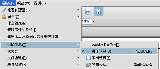 順帶提一下,當你轉成PDF的時候,預覽是看不到疊印效果的,所以請在工具列上選擇「進階>列印作品>疊印預覽」,這樣才能夠辨認InDesign CS4魔術師的詭計!(媽的,好想把cs4砸了)