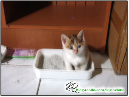 昨天我弄了一個小盆的貓沙盆,其實就是以前豆花用的那個便當盒,早上還沒看到他們使用的痕跡,倒是他們會蹲在上面,尤其是整罐吸,不過早上看他蹲那麼久,也沒蹲出什麼東西。不過我晚上回家的時候,有看到三坨結塊的沙團,所以他們應該有來上過,指不過,在沙盆旁邊,還有看到其他的尿液痕跡,唉......
