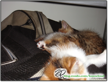 這兩隻睡覺很好笑,請注意看他背上黑黑的,那是小黑的腳,也就是說,他們現在是69的姿勢......XD