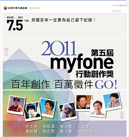 最近又到了台灣大哥大舉辦的myfont行動創作獎比賽日期了,今年又剛好是民國一百年,所以大家有空就來參加吧~
