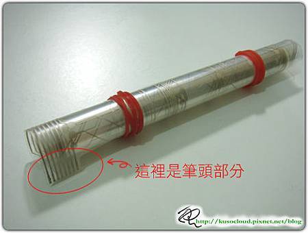 當然,捲起來的時候還要考慮到筆頭的部分,剛好這一個鍵盤在左上角(尾端部分)有凸出的輸出埠,本來是用來連接PCB版的,剛好可以當成捲起來之後的筆頭。