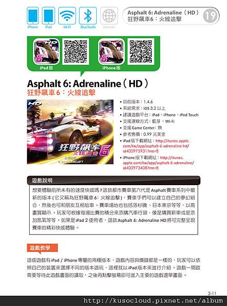 另外啊,因為編這本書的關係,我本來不會很喜歡玩賽車的 (因為我覺得我好像是賽車白癡...XD),現在都會不自覺地每天玩個幾趟。說真的,iPad/iPhone/iPod Touch上面的賽車遊戲真的很簡單,基本上都不會有太多的按鈕,所以可以很快就適應說。不過,玩賽車最好用小一點的機子會比較好,例如iPhone/iPod Touch,用iPad也可以啦,就是比較重一點說~ XD