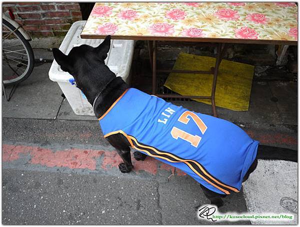 雖然林書豪因為膝蓋受傷,所以話題比較少了,但是大家還是很注意它的動向啊~這是前幾天去誠品的時候,路邊遇到的狗哥,它也穿著林書豪的球衣勒,真是有趣,可惜還沒拍到牠的正面牠就跑了~^_^