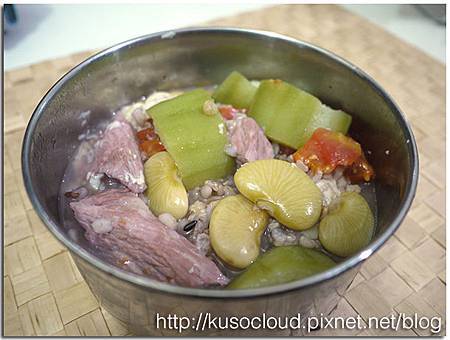 材料就是:12穀米、皇帝豆、思瓜、肉排、番茄、豆皮,就醬子,丟到鍋子裡煮就好了~