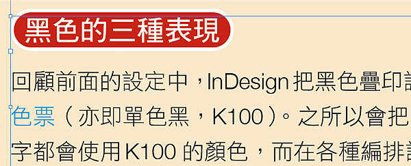 - 不要有文字框填色的情形發生:這個可以參考以前發表過的文章-「用InDesign製作電子書的一些重要小規則-不用要文字線條填色」