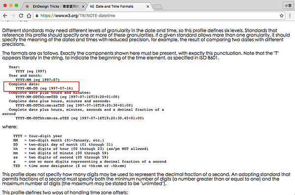 所以我就來到https://www.w3.org/TR/NOTE-datetime這個網址看看正確的時間標示碼為何,原來是“YYYY-MM-DD”。