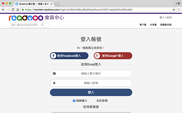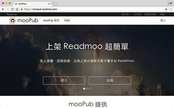 那我們就開始吧,首先mooPub需要先註冊Readmoo的帳號,這兩個帳號是連動的,可以用臉書註冊比較快。