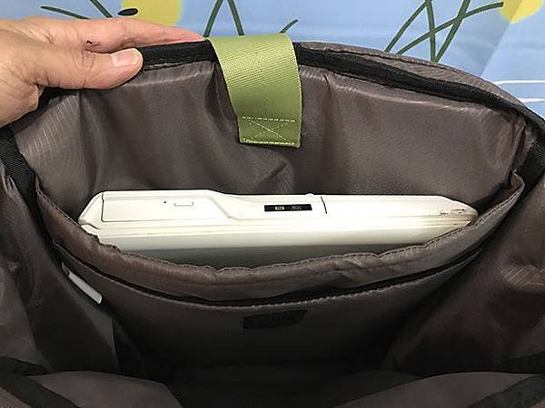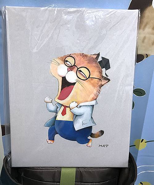 內袋的空間有多大呢?每次開箱都塞相機、電腦或是書的太無聊了,這裡我拿了朋友送我的一個畫板(寬31、高40cm的壓克力畫)來試試能不能塞下去。