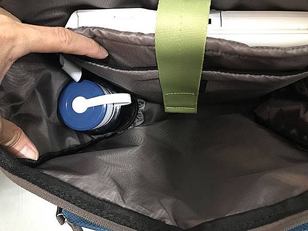 而在這個收納空間中,還隱藏了一個小袋子,可以用來放水壺喔。