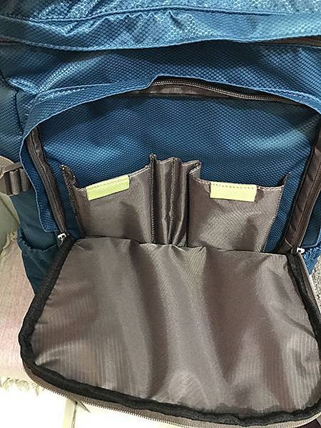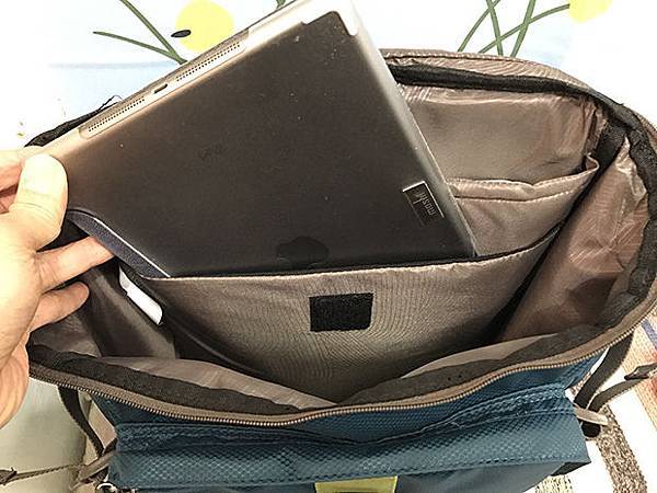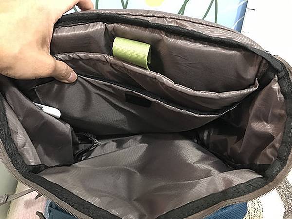 接下來看看最主要的收納空間,基本上有三層,最後面一層是用來放15吋的筆電,擁有極佳的抗至保護效果,第二層是放平板或雜誌,第三層就是最主要的收納空間了,這個空間大約有 24.9 x 2.3 x 38.1cm,可是相當的大喔~