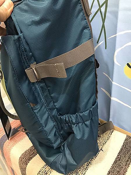 然後是背包左右側的側袋,都有附上束帶設計,方便固定住放在這裡的物件,例如水壺、雨傘或其他長型物件。