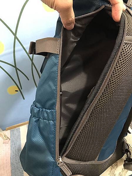 左側的拉鍊則是可以直接開啟背包內側的收納空間,有點像是相機包的設計,方便即時掏出裡面的大相機。