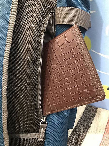 而在背面的部分,最頂部是一個頂部拉鍊袋,整個背面設計成透空的袋子,可以插入行李箱的手拉桿,非常方便出國攜帶。而在背面右側的地方有一個類似防盜拉鍊袋的設計,裡面的空間不大,但是足夠放一些重要證件或小筆記本。而左邊也還有一個大拉鍊,可以直接開啟背包內側的空間。