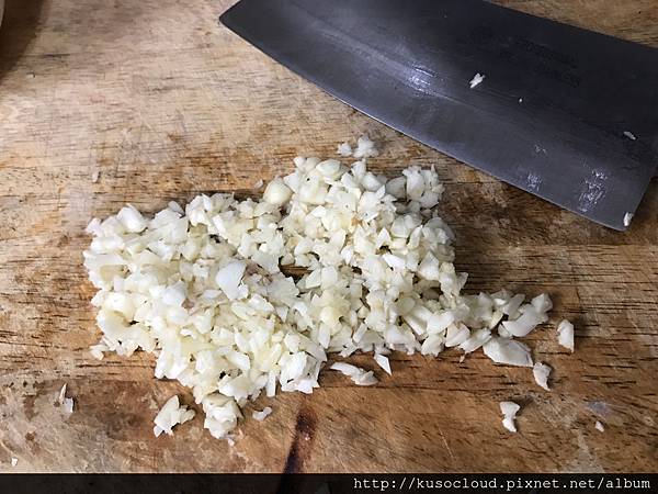 當然撥好的蒜頭要切碎。