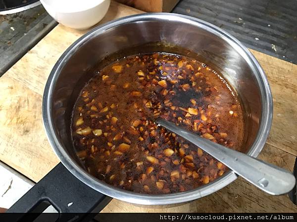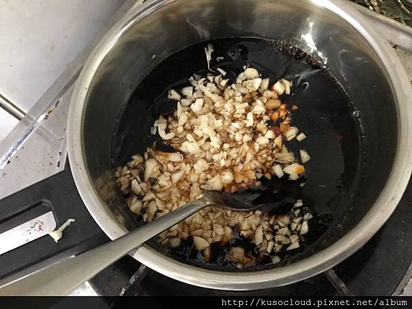 然後把蠔油跟蒜末都倒入鍋裡煮一下,用小火讓它煮沸就可以熄火啦。中間如果覺的醬料太濃可以加些水煮沸稀釋。